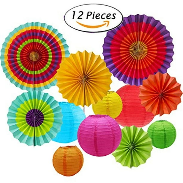 Sonnis 12pcs Hanging Fiesta Paper Fan Lanterns Decoration Mexican