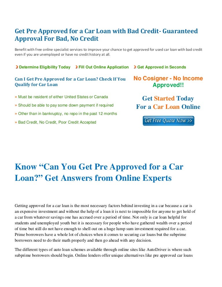 Can I Get Pre Approved For A Car Loan