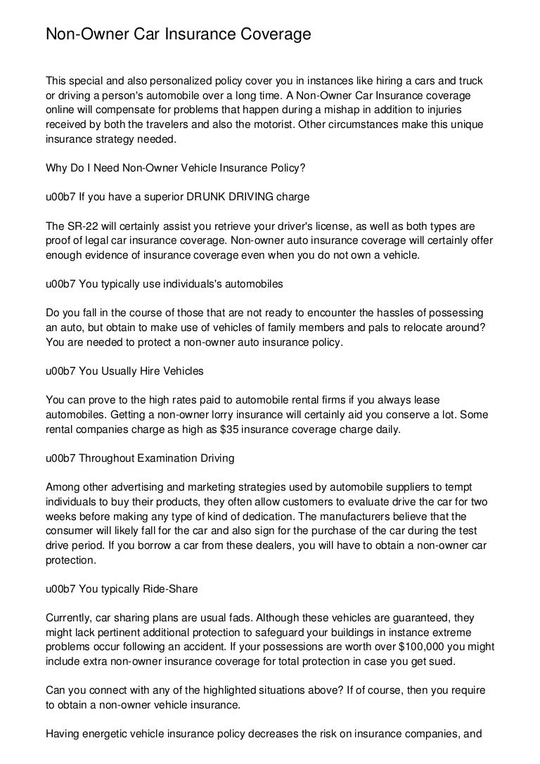 What Does Non Owners Car Insurance Cover Insurancetipscentral